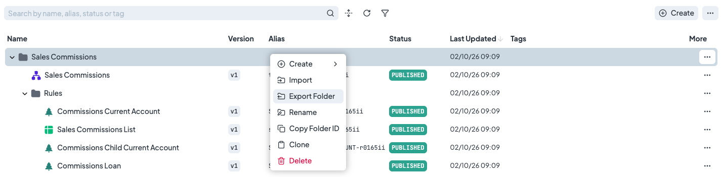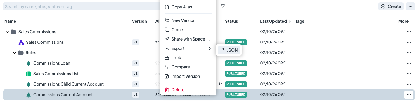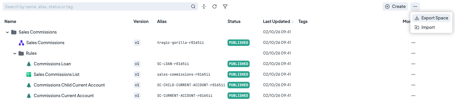 You can export rules individually, an entire folder containing multiple rules, or export the entire space.