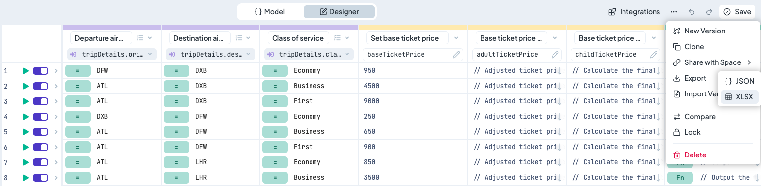 4. Choose your format: **JSON** or **XLSX** (if available for that rule type).