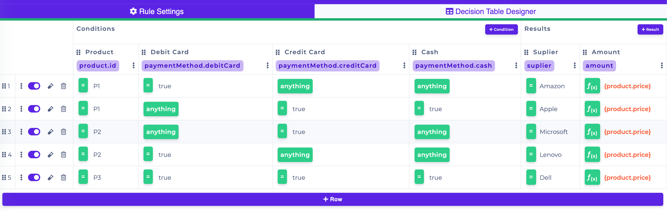 As you might have noticed, the body of the request to the Rule Solver API takes an optional options object. This object allows to configure the solver. In general, the options are different for each type of rule. As of now, they are only used for decision tables.