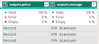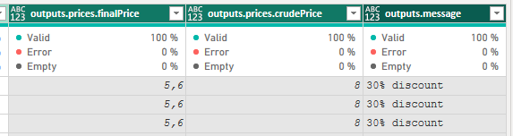 As you can see the outputs.prices contain another record type values. To expand them further proceed as above.