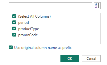 Now choose wich input fileds you want to expand. And make sure the 'Use original column name as prefix' is checked. If not you might have a hard time telling the inputs and outputs apart.&#x20;