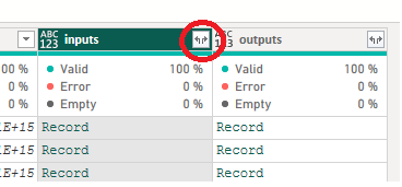 Now lets do the same thing to outputs. Depending on the model you have defined you might need to repeat the expand column multiple time. Now in our case we will have to expand the outputs column twice. Click the expand button and proceed like we did in the previous step.&#x20;