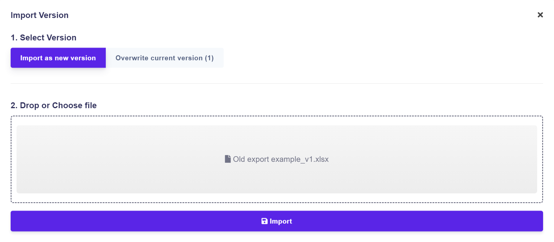 Import as new version: The imported rule will be added as a separate version.