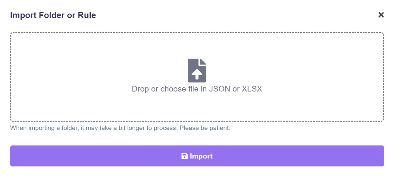 You will then be prompted to drag and drop or choose a file from your system that contains the rule.