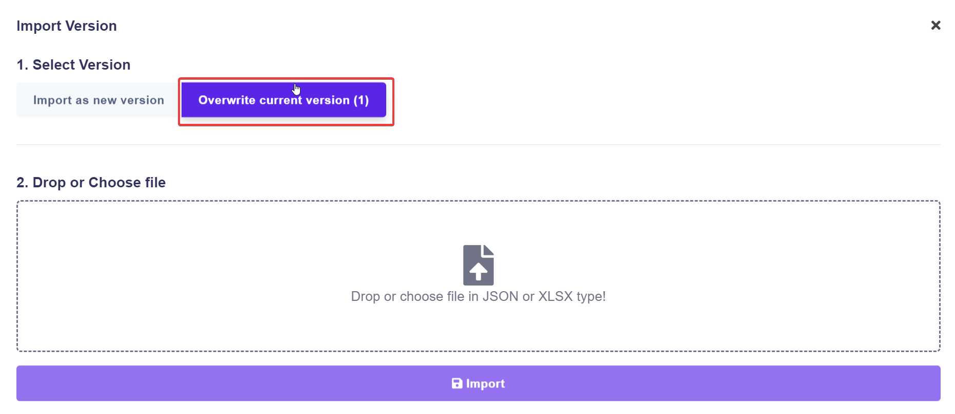 Overwrite current version: The imported rule will replace the current version.