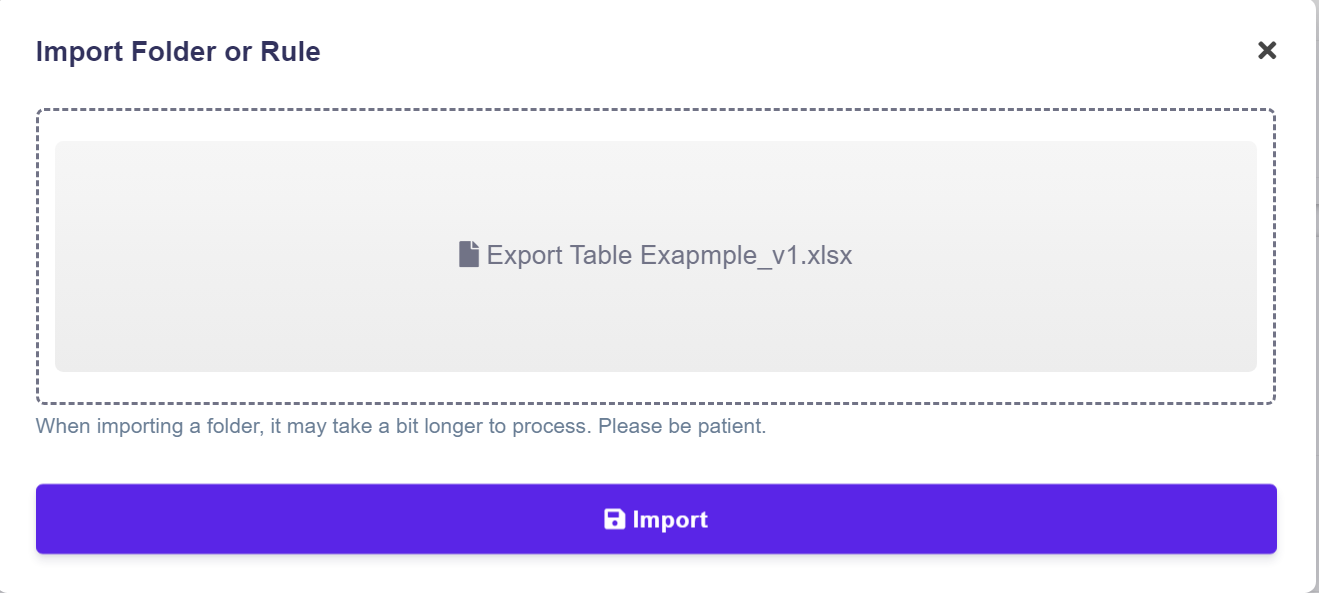 Once your rule file is selected, click Import.