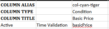 Column Alias: Maps the column to the valid value. The alias must match the alias used in the Table sheet. If the app cannot locate the column with this alias, those valid values will not be applied. This field is case-sensitive.