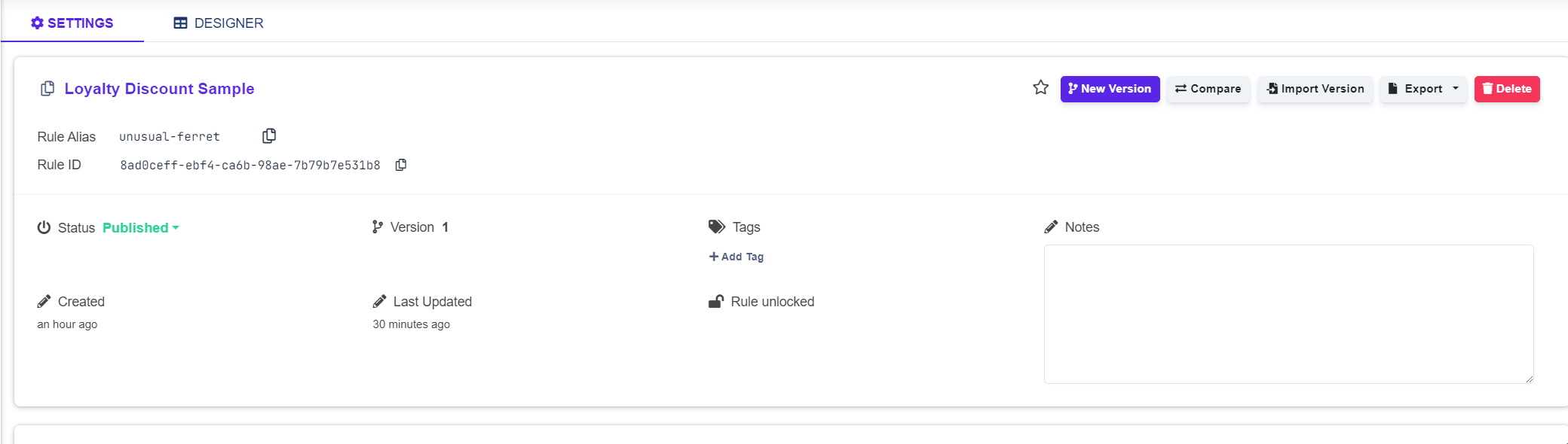 1. Navigate to the **Decision Table Designer** section.