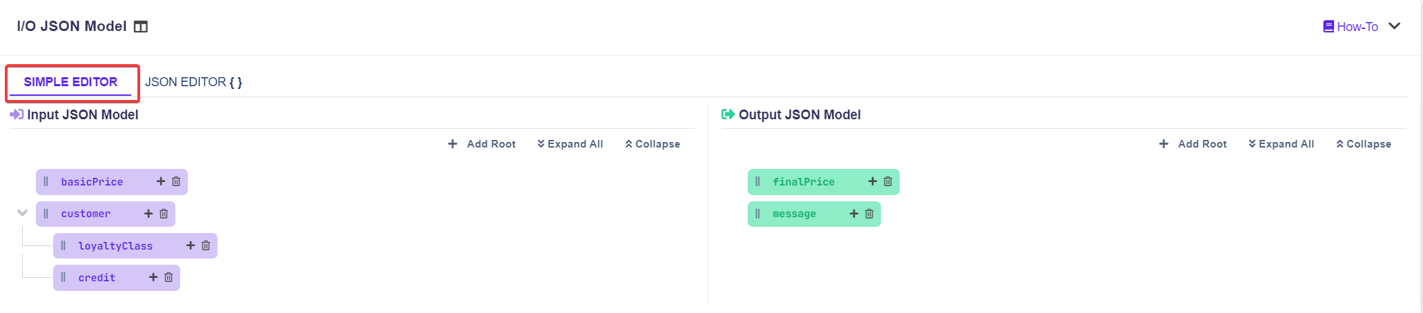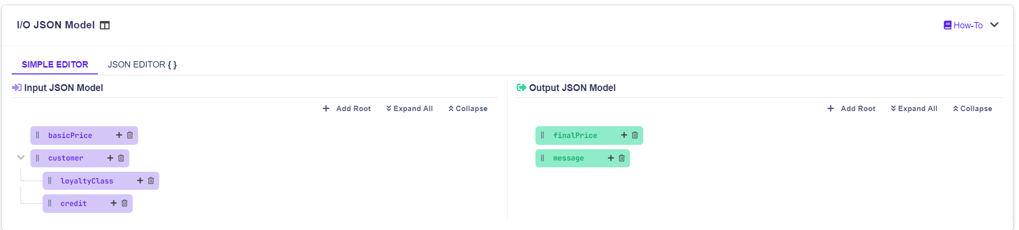 After making any changes to the input/output model, be sure to save them by clicking the **Save** button in the bottom-right corner. Please note that all changes apply only to the current version of the rule.