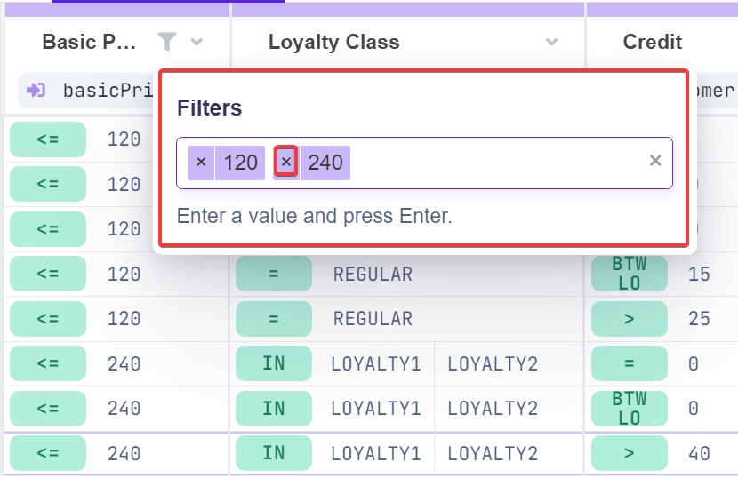 Set Filter Expressions: A filter input field will appear where you can add one or more filter expressions. Simply type your expression and press Enter to apply it.