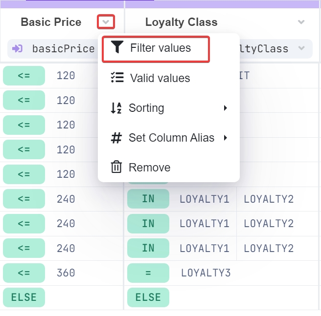 Filtering values in a decision table allows you to narrow down rows based on the values in a particular column. This is especially useful when working with large datasets.