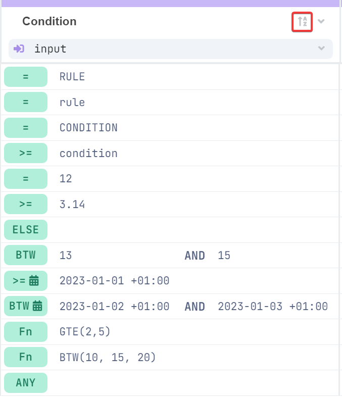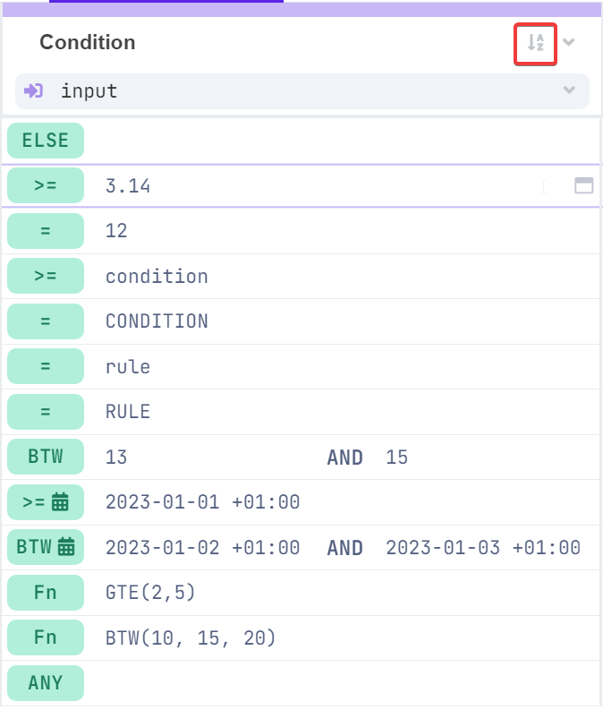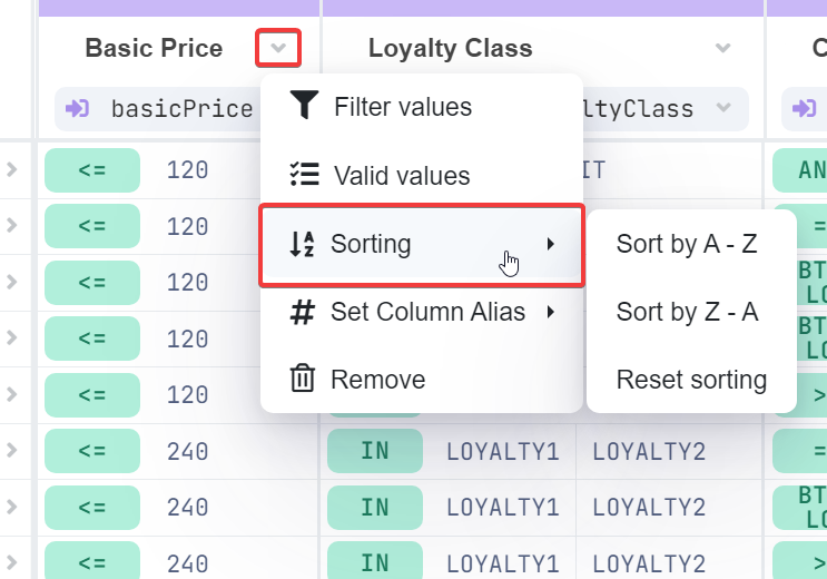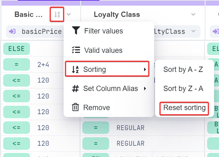 Sort Values in Decision Tables