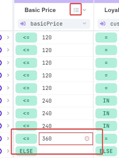 will appear in the column header.To update the valid values, click the valid values icon in the column header to reopen the modal. You can then add new values or remove existing ones.