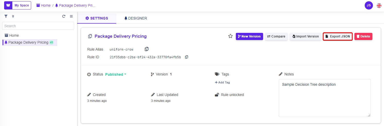 Navigate to the rule you wish to export and into it's settings, then click on Export in the top right corner. (Image 2)
