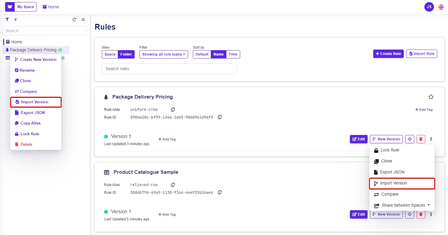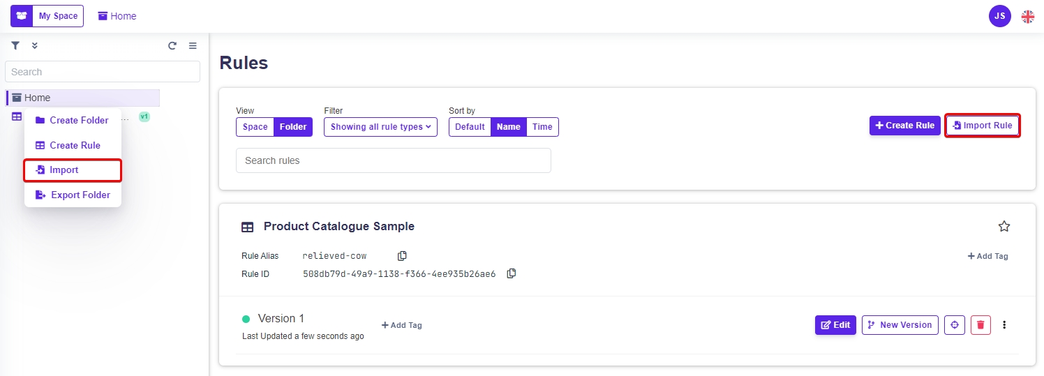 To import a new Rule navigate to the Business Rules category through the sidebar or select a folder you want the rule imported into in the Folders manager.