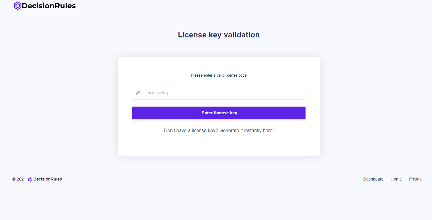 curl -L https://decisionrules.io/showcase-with-business-intelligence/docker-compose.yml --output docker-compose.yamlGenerate DecisionRules License Key