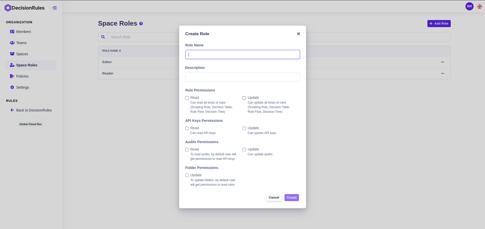 Create / Update space role