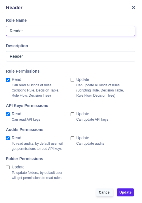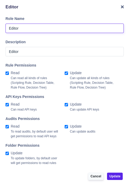 Update - Can update, export, import all kinds of rules (Scripting Rule, Decision Table, Rule Flow, Decision Tree).