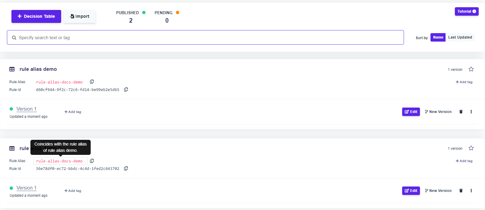 Using rule alias with management API