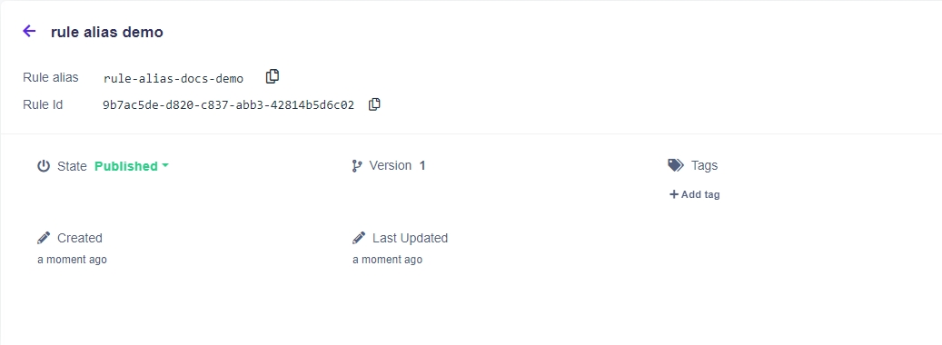 Rule alias is a more comfortable and convenient alternative to rule ID. Unlike rule ID, the rule alias can be set by the user. Then it may be used to refer to the rule from other rules or when calling the Rule Solver API.