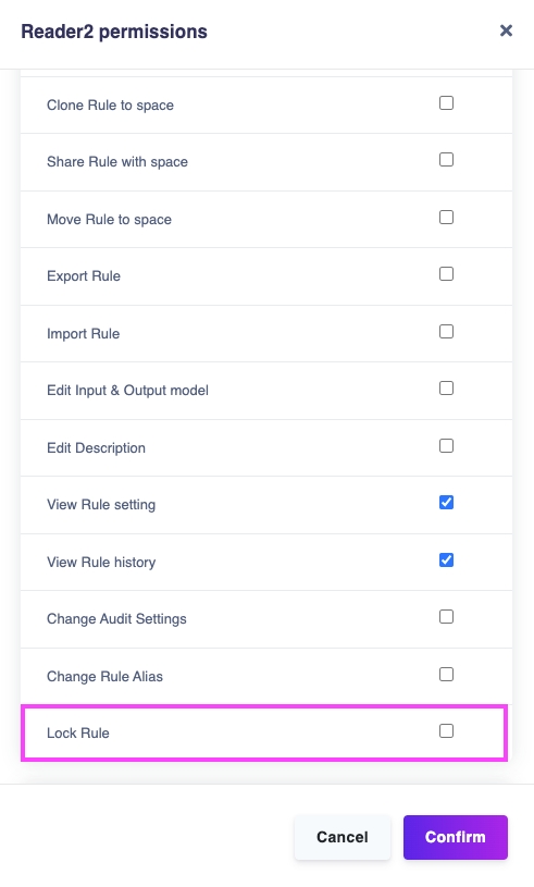 Do not have “Lock rule permission”: