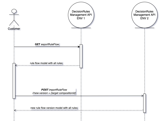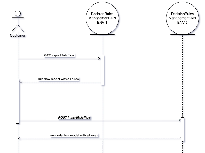 In this scenario, we take a Rule Flow model together wit all the rules used in it from Environment 1 and create a new Rule Flow version in Environment 2.