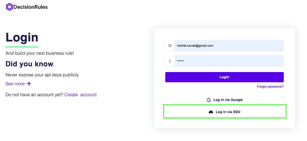 How to Login to DecisionRules using Single Sign-On (SSO)