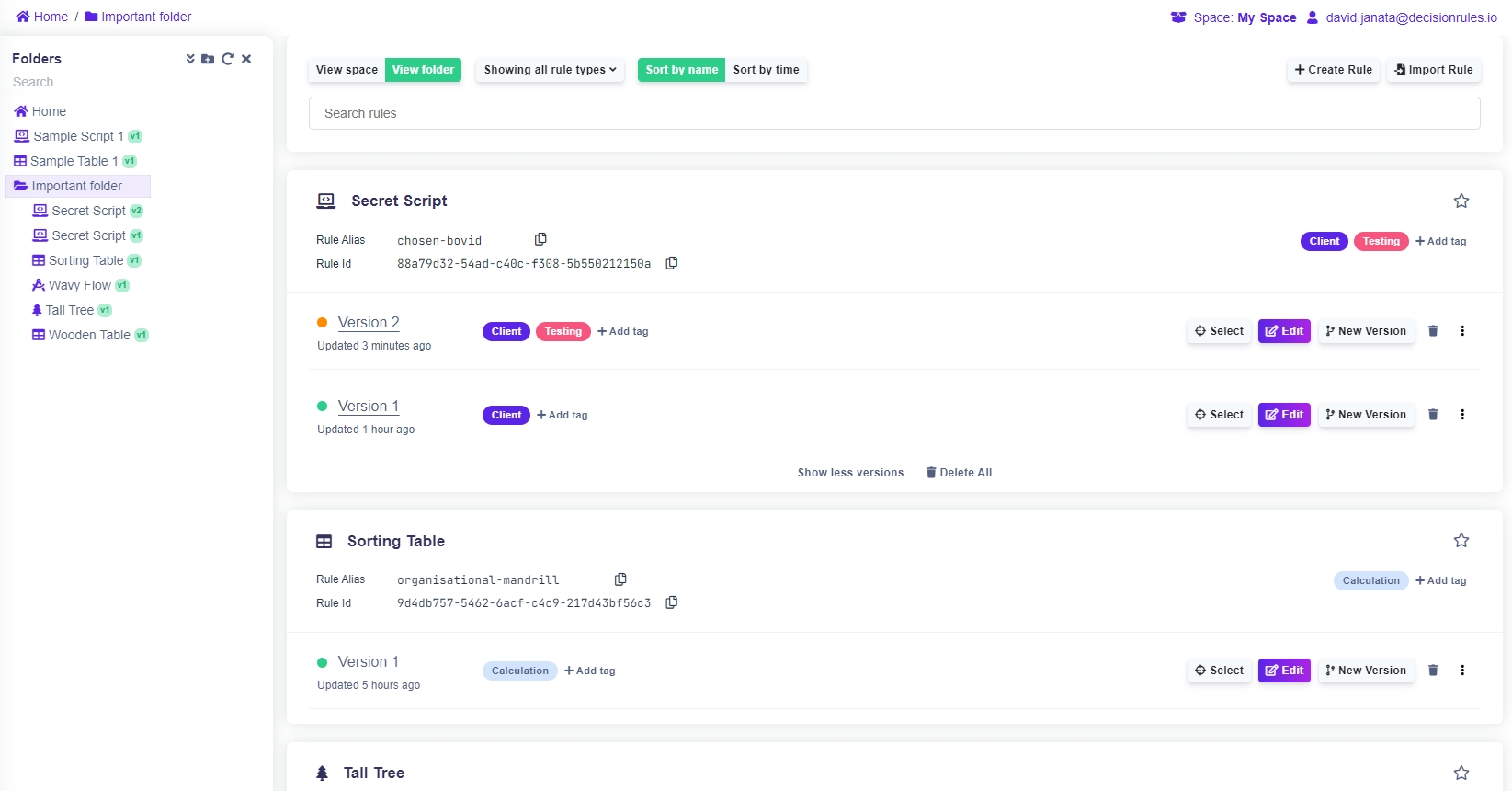 Aside from allowing for a clear visual differentiation and classification of your rules and rule versions, tags may be also used to filter search results.