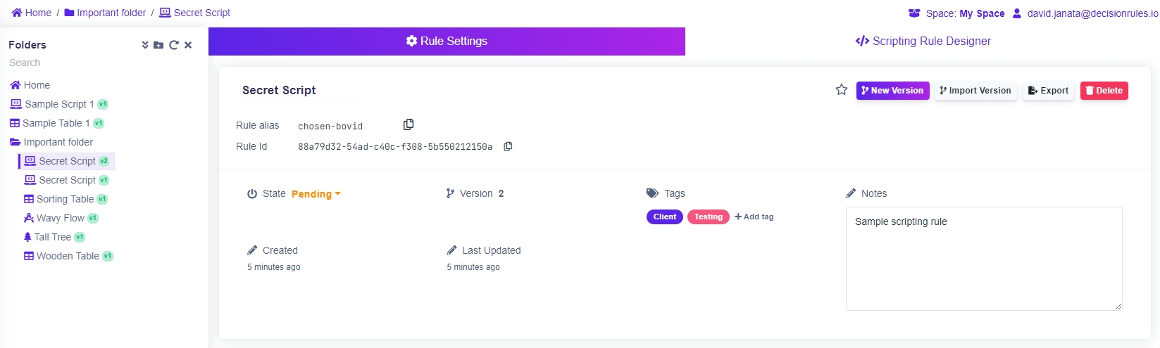 *Applies to all Rule types - Decision Tables, Decision Trees, Scripting Rules and Rule Flows.