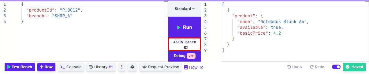 Click on JSON Bench button to switch between the simple and JSON test bench.