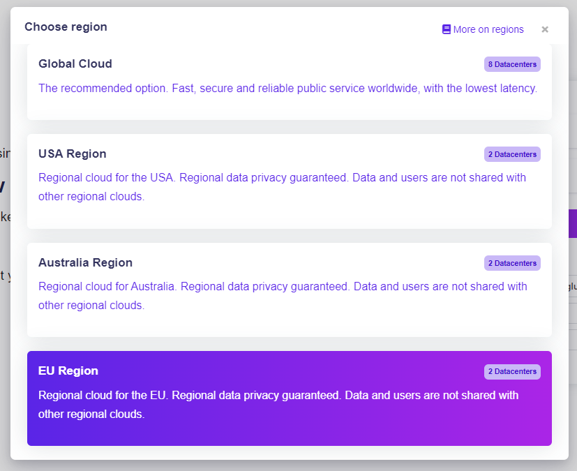 When creating a Regional Cloud account, make sure you've selected the correct region for your organization.