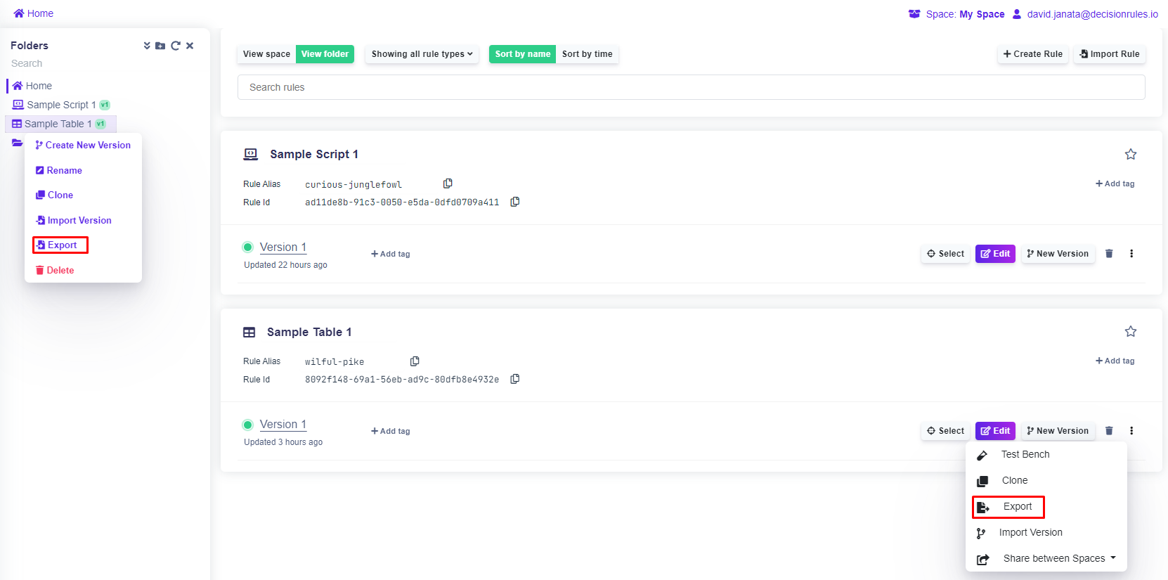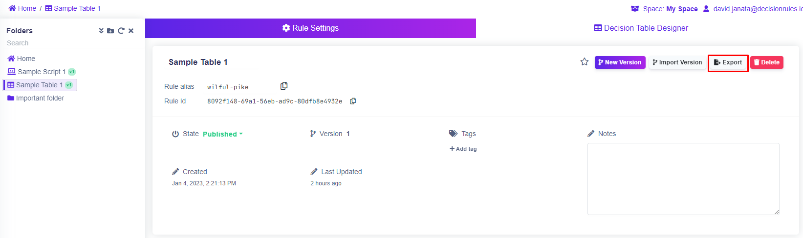 Exporting a Rule