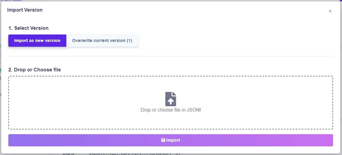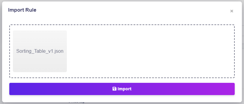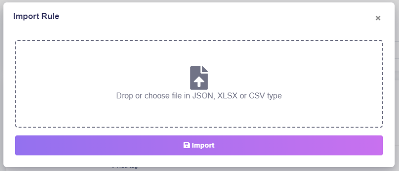 After selecting the method of import, drag and drop your rule file into the dashed area or click within it to open a File Explorer. For Scripting Rules, the rule file can only have the format of JSON.