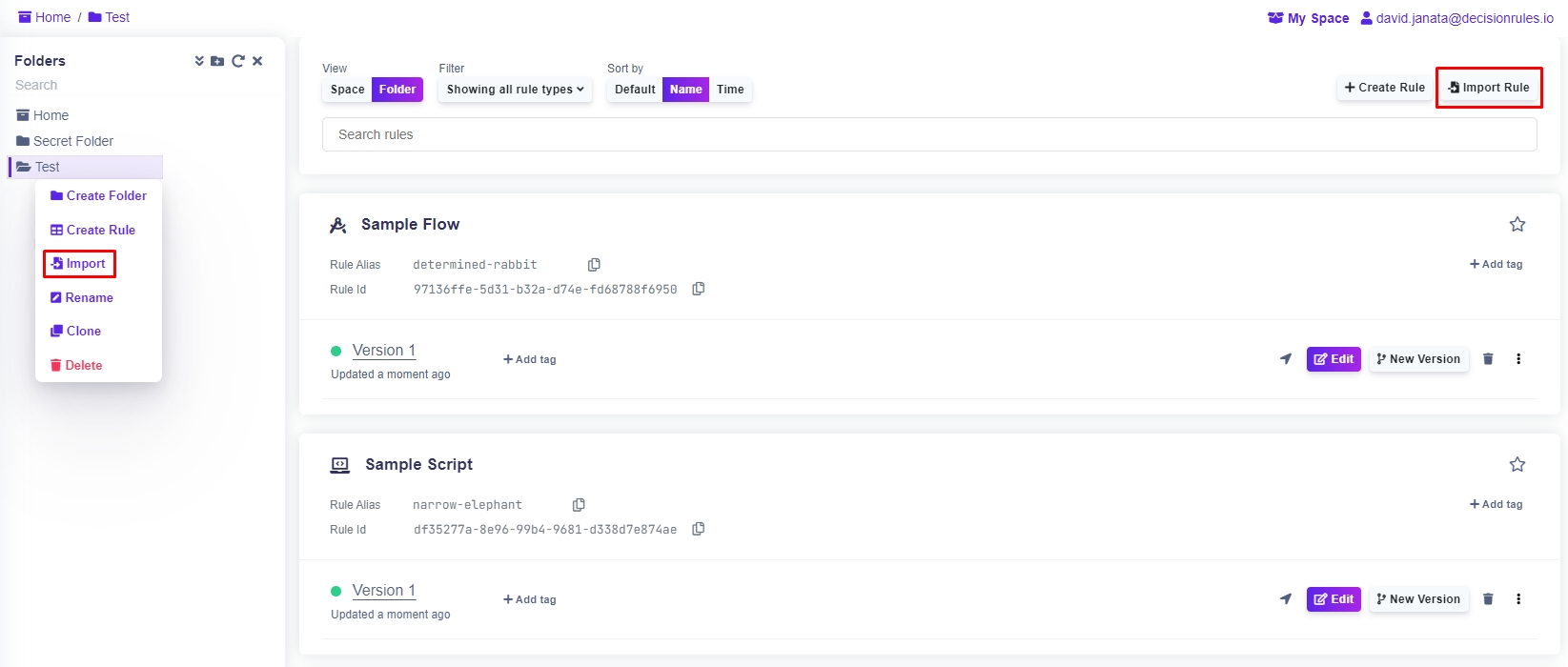 To import a new Rule navigate to the Bussiness Rules category through the sidebar or select a folder you want the rule imported into in the Folders manager.