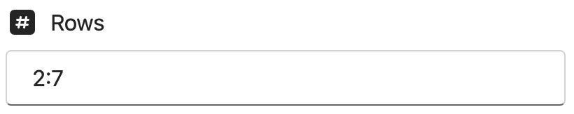 A combination of rows: 1;3:5;7 (rows 1, 3 to 5 and 7 - the combination is indicated by ";")