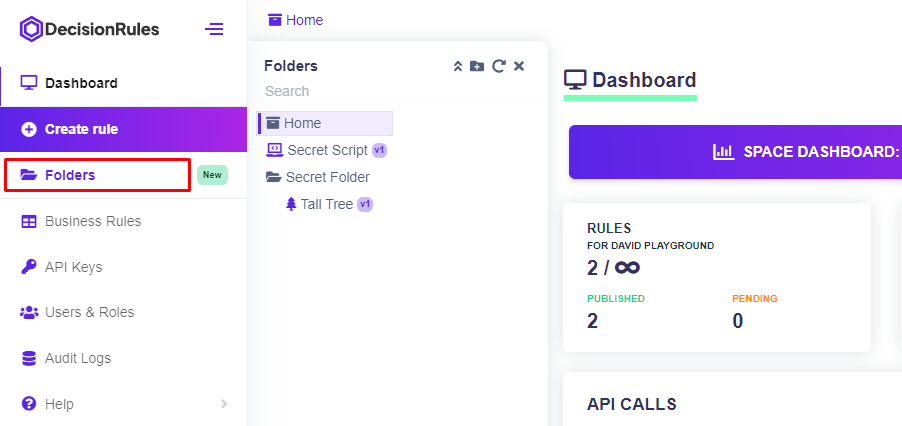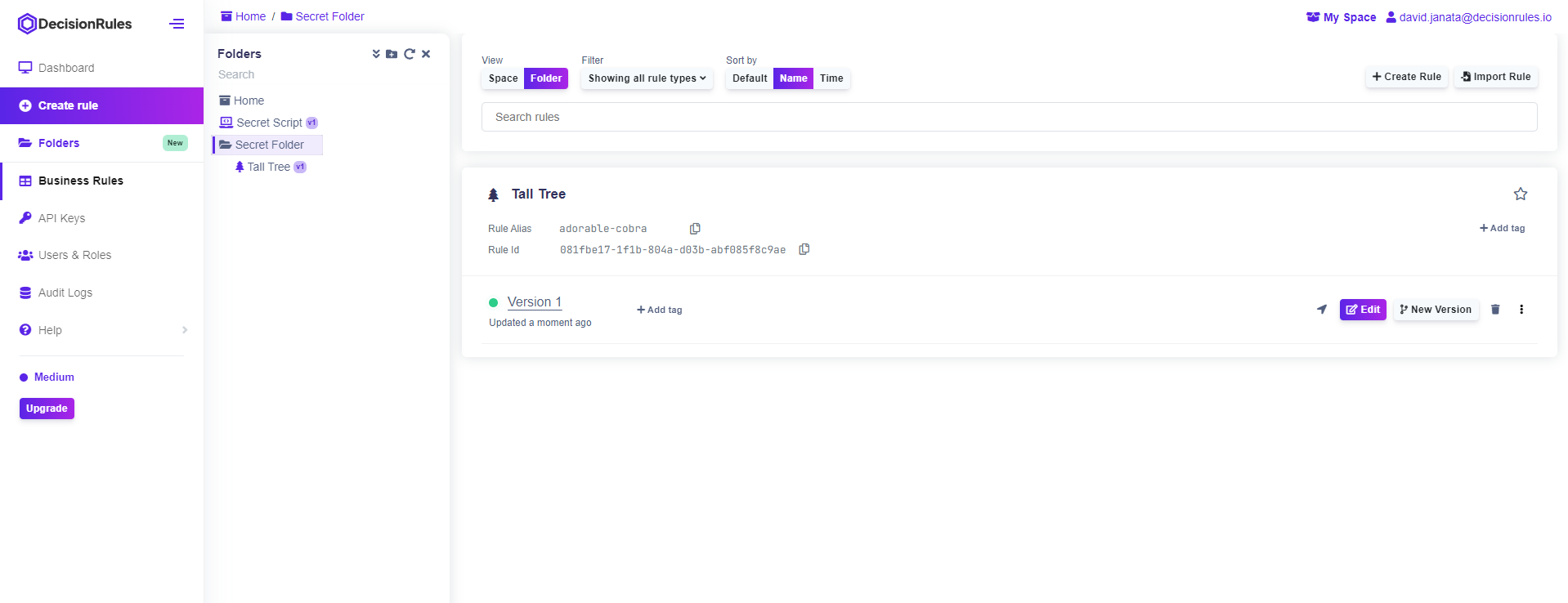 <figure><img src="https://content.gitbook.com/content/dv9UprVu3KjO5la255ws/blobs/dLrMzll2ZB44UCmNQDhL/image.png" alt=""><figcaption><p>Secret Folder contains only one rule - Tall Tree, therefore only Tall Tree is displayed in the overview </p></figcaption></figure>