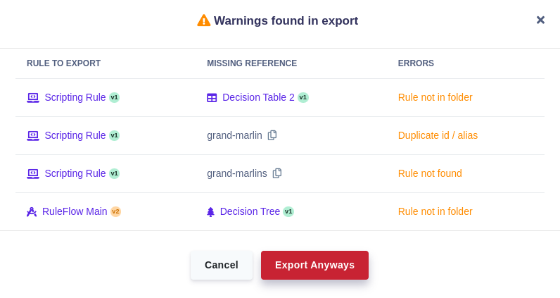 * **Rule not in folder -** exported rule has a dependency outside of the exported folder &#x20;