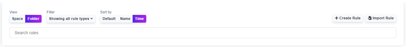 The **View** selector lets us choose whether to display only the rules inside our selected Folder or all rules across the entire Space we're currently in.