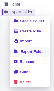 Clicking on the "**Export folder**" option in the context menu allows you to initiate the process of exporting the selected folder and its contents to **JSON** format.