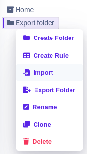 Clicking on the "**Import**" option in the context menu allows you to initiate the process of importing folder into the selected folder. The expected format of the file to import is **JSON.**