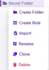 Right-clicking on Rules and Folders in the Folder manager brings up different context menus.